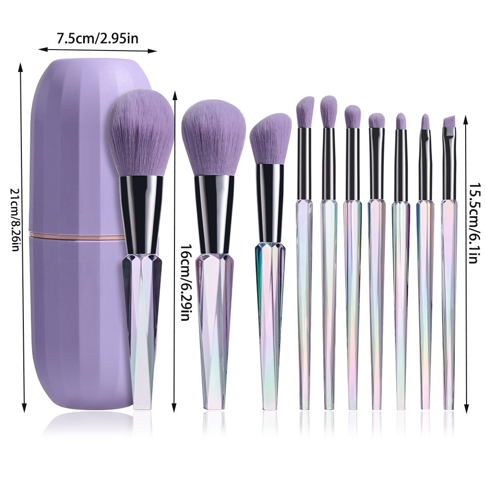 Discover the ultimate makeup experience with our 10-piece Transparent Makeup Brush Set, featuring a stunning purple makeup brush bucket and vibrant, colorful brush handles. Perfect for both beginners and professional makeup artists, this set provides all the essential tools you need to create flawless looks effortlessly.