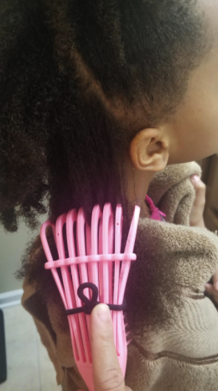 This product is terrific! I am never able to completely detangle my daughter’s super curly textured hair because it always ends in a crying battle. But with this brush, for the first time in her 8 years, I was able to detangle her hair within 20 minutes without the fuss! The clip that comes with it to stabilize the brush bristles pops off a lot so my 8 year old gave me the idea to put the hair bow around it and it worked perfectly!