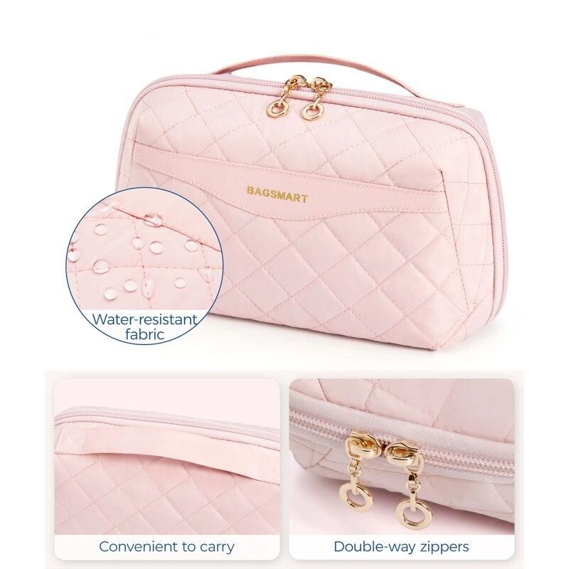 Step up your travel game with our Portable Water-Resistant Cosmetic and Toiletry Organizer Bag. Designed for the modern woman on the go, this bag combines functionality with a touch of elegance. Whether you’re on a quick getaway or managing daily essentials, it’s the ideal companion for keeping your beauty and hygiene products perfectly organized and accessible.