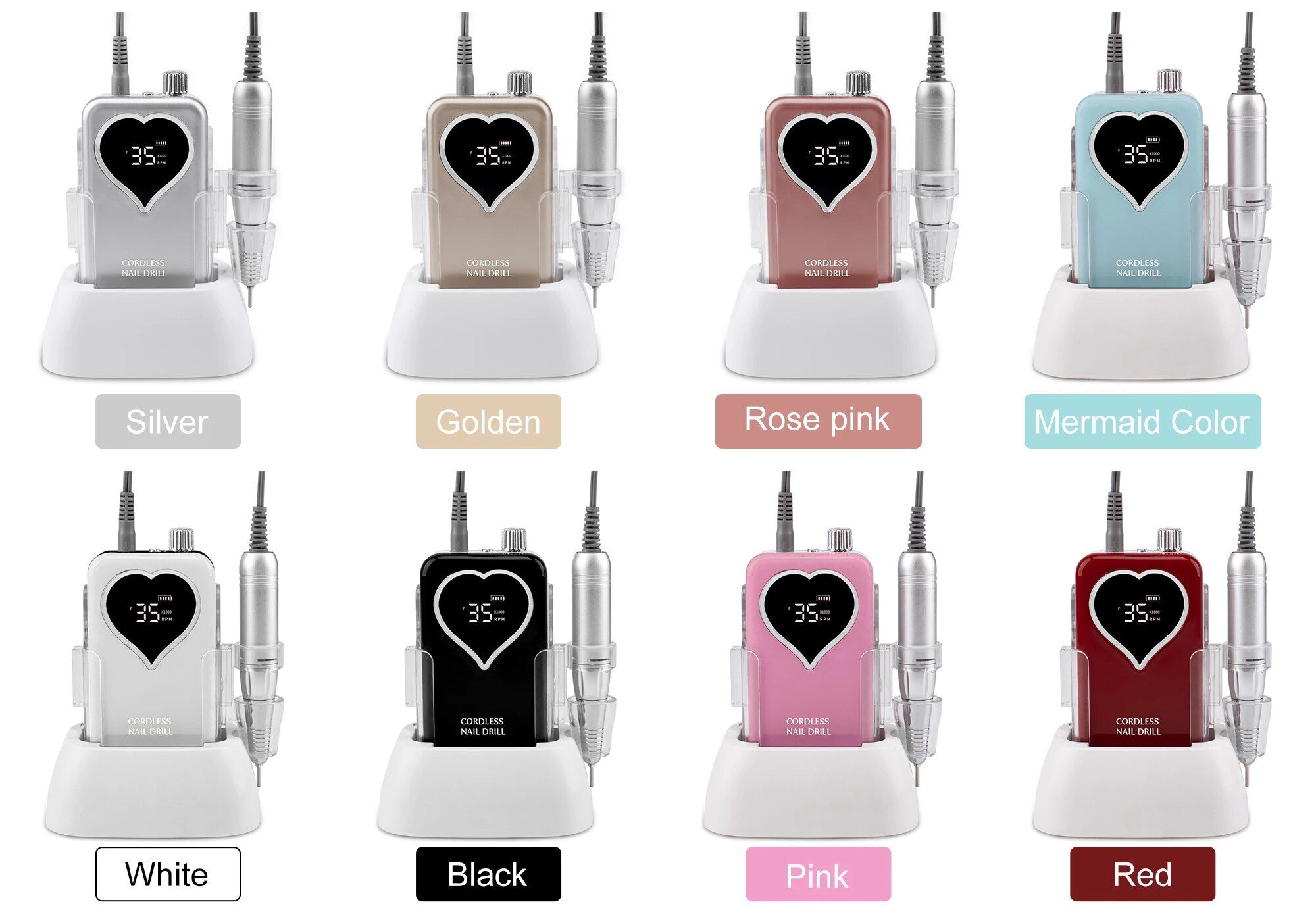 Discover the ultimate tool in nail care – our Rechargeable LED Heart Nail Drill. This high-performance, cordless electric machine revolutionizes manicures and pedicures, providing salon-quality results from the comfort of your home. Whether you’re a professional nail technician or a DIY nail art enthusiast, this nail drill is designed to cater to all your needs. Its sleek design, combined with advanced technology, makes it a must-have for every nail care kit.