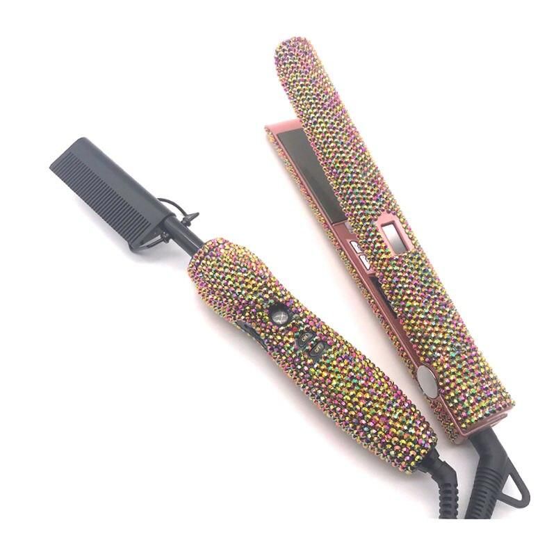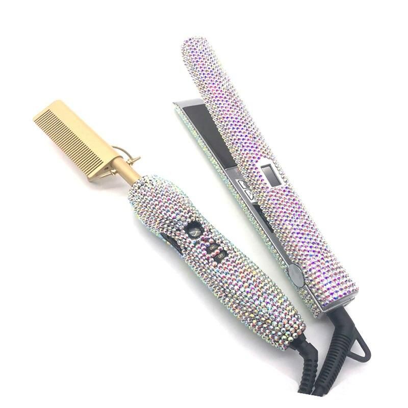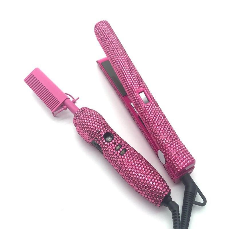 rhinestone decor hair straightener & hot comb duo setRhinestone Decor Hair Straightener & Hot Comb Duo Set