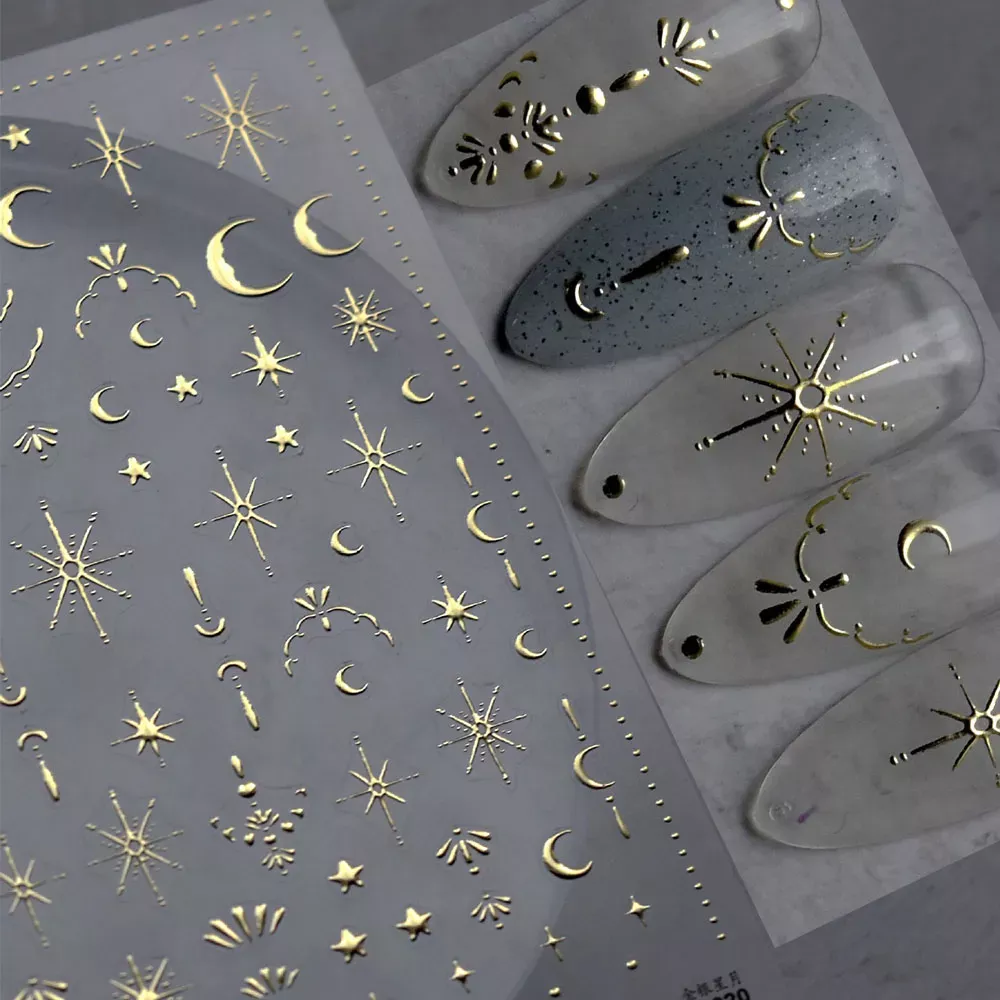 sun, moon, and stars 3d gold bronzing nail art stickersSun, Moon, and Stars 3D Gold Bronzing Nail Art Stickers